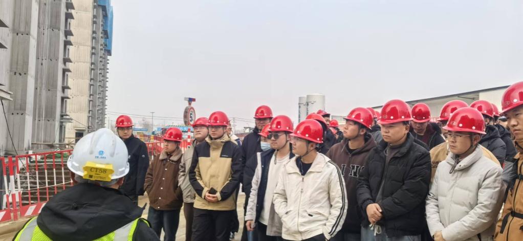 沣东地产项目负责人介绍了项目的基本概况并对同学们的来访表示欢迎。中建一局项目经理介绍了项目当前的施工进度,就该项目诸多部位所采用的施工技术向同学们做了讲述,特别是“星璇智能劳动力管理系统”充分为现场施工人员保驾护航,极大地提高了施工作业的安全性。同学们主要实践学习了施工电梯的设置、锚索复合式土钉墙的施工工艺、混凝土实验块的标准养护等内容。工程技术人员与专业教师的联动讲解,使学生对该项目有了深刻的认识,更提高了自身的专业能力。