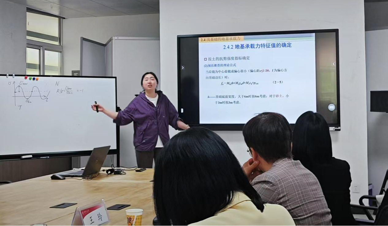 比赛开始前学院副院长王丽娟就比赛要求、比赛流程及比赛纪律做简要介绍,同时王丽娟老师强调:“教学竞赛要坚持以德立教、以赛促改,将课程思政巧妙融入教学过程。”随后,参赛教师分两组展开角逐,涵盖建筑环境与能源应用工程、市政工程、土木工程、景观艺术、力学等多个学科领域。