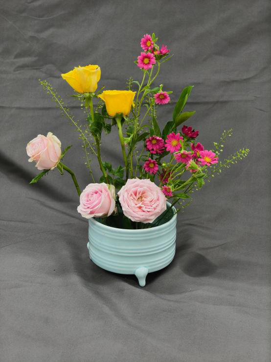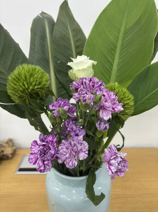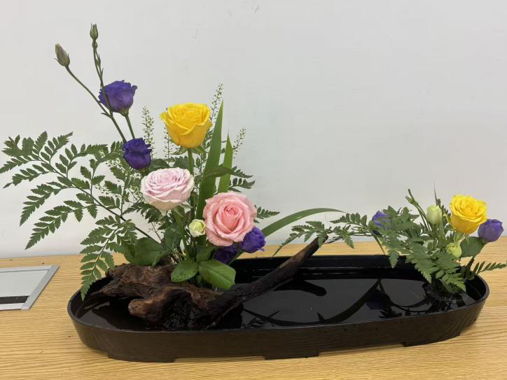 课程学习期间,同学们以花为媒,完成了从“理论认知”到“实践创作”的完整蜕变。在选材上,学会精准把握植物的形态特质与季节特性;在构图中,逐渐领悟线条、疏密、虚实的平衡之道;在创作里,更是大胆融入风景园林专业的空间思维,让作品兼具自然意趣与景观视野。大家在作品中追求“以花传情、以景表意”,既有淡雅清新的自然风作品,也有兼具现代设计感的创意之作,在一枝一叶的排布中,深刻体会到插花艺术的自然之美、人文之韵与浪漫之情。此次课程不仅点燃了同学们对花艺的热爱,更让大家意识到传统插花文化在现代景观设计中的独特价值,为后续专业学习注入了新的灵感与活力。