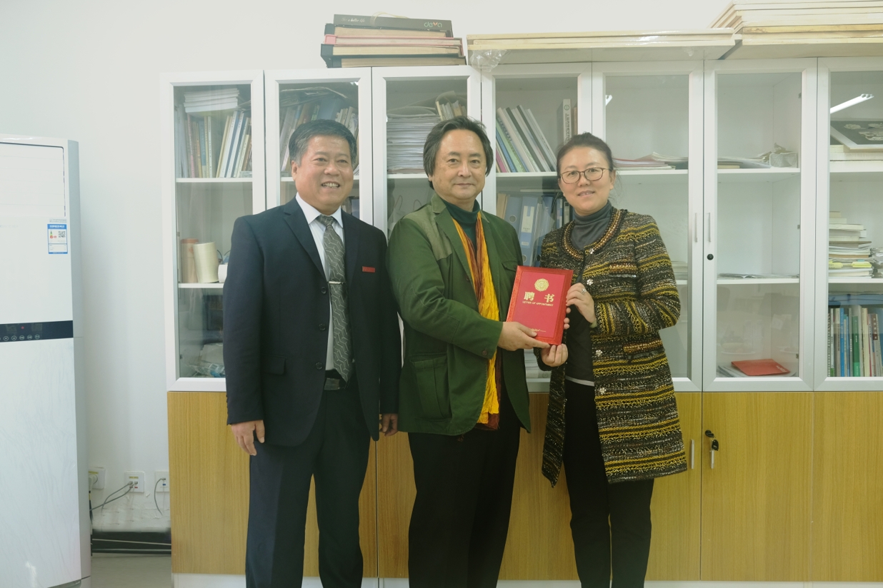 当天下午,学院负责人、景观艺术系部分教师与松岗拓公雄教授进行了座谈。座谈会结合学院学科发展、环境设计专业建设,就如何开展与亚细亚大学之间的教师研修、访学及学术交流、科研合作、学生短期交流学习方面的合作进行了深入交谈。座谈会上,学院院长马云教授为松岗拓公雄教授颁发了聘书,聘请松岗拓公雄教授为开云客座教授。