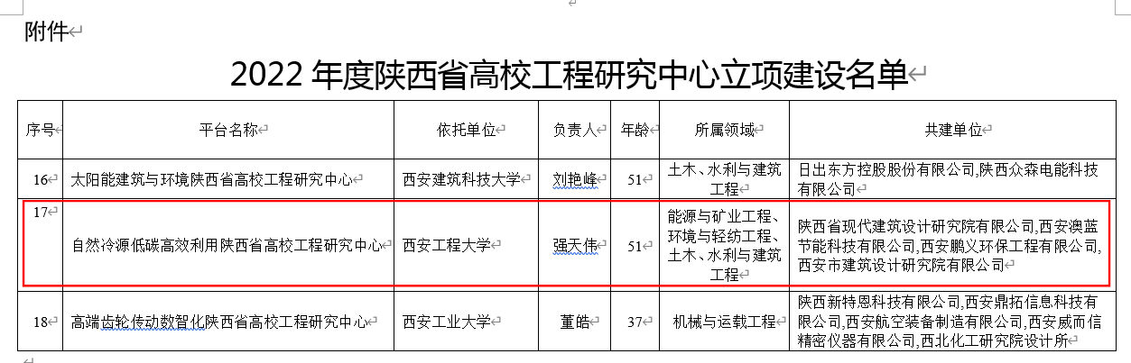 近日,陕西省教育厅确定55个工程中心为陕西省高校工程研究中心立项建设,kaiyun开云官方网站申报的“自然冷源低碳高效利用陕西省高校工程研究中心”获批立项建设。