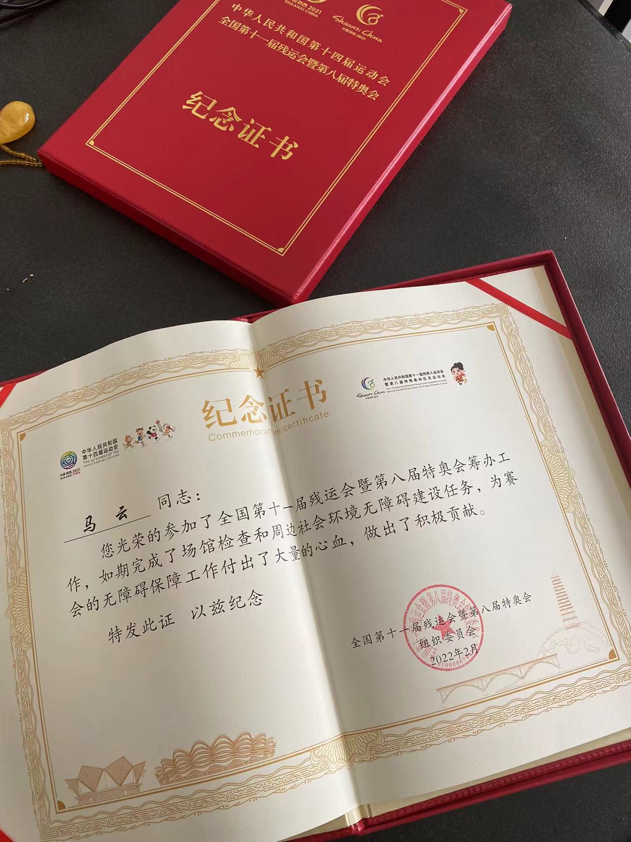全国第十一届残运会暨第八届特奥会于2021年10月在西安举行,kaiyun开云官方网站临潼校区文体馆是比赛场馆之一。马云教授作为专家被聘为全国第十一届残运会暨第八届特奥会无障碍专家指导委员会委员,参加了两会的筹办工作,为赛事的无障碍保障工作做出了积极贡献。据悉,同时被颁发纪念证书的还有其他15位省内外专家。