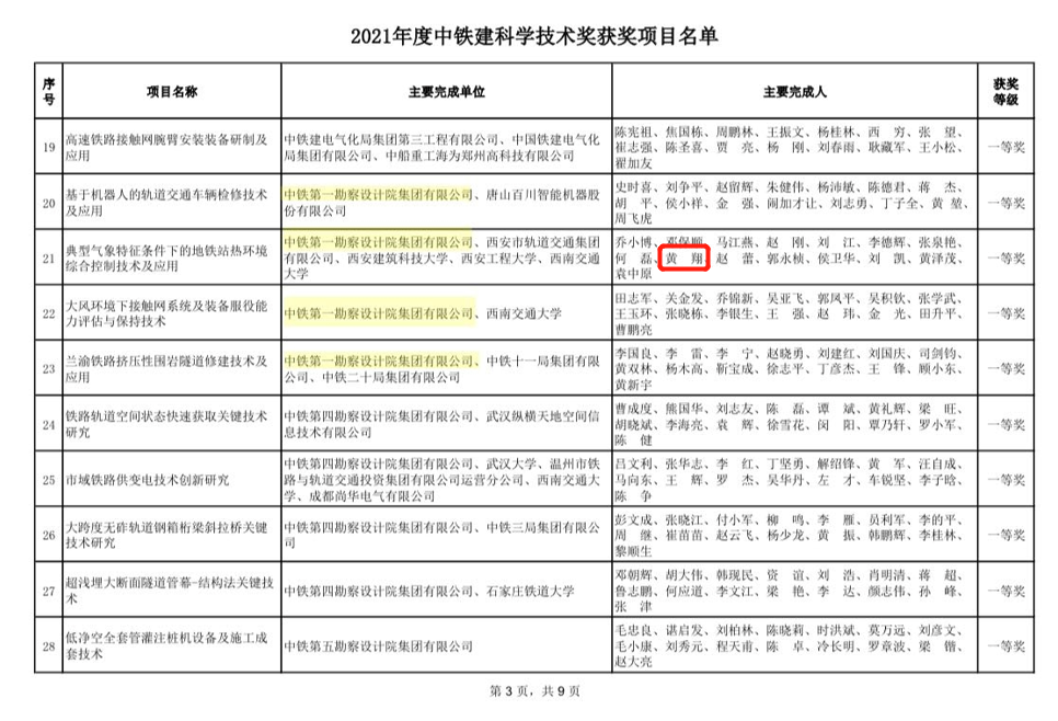 开云建环系黄翔教授参与的由中铁第一勘察设计院集团有限公司、西安市轨道交通集团有限公司、西安建筑科技大学、kaiyun开云官方网站、西南交通大学等五个单位联合申报的项目“典型气象特征条件下的地铁站热环境综合控制技术及应用”荣获2021年度中铁建科学技术一等奖。