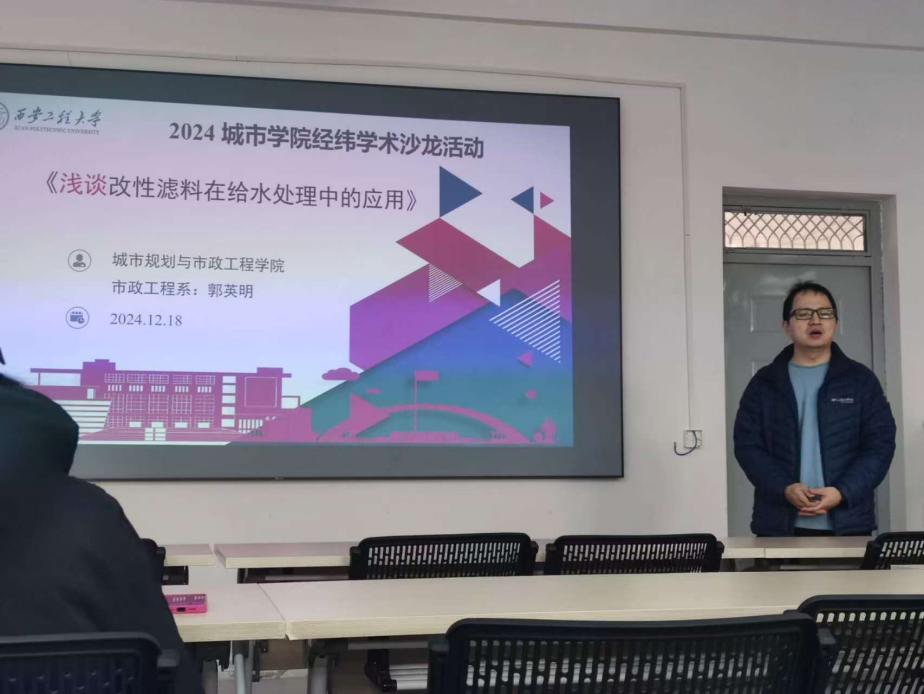 学术的火花在这里碰撞,智慧的火花在这里绽放。2024年12月18号上午,kaiyun开云官方网站在学院322会议室举办“一院一品”丝路大讲堂系列活动。本次学术讲座主题为《浅谈改性滤料在给水处理中的应用》,由开云市政工程系教师郭英明老师主讲,研一、研二全体学生参加。