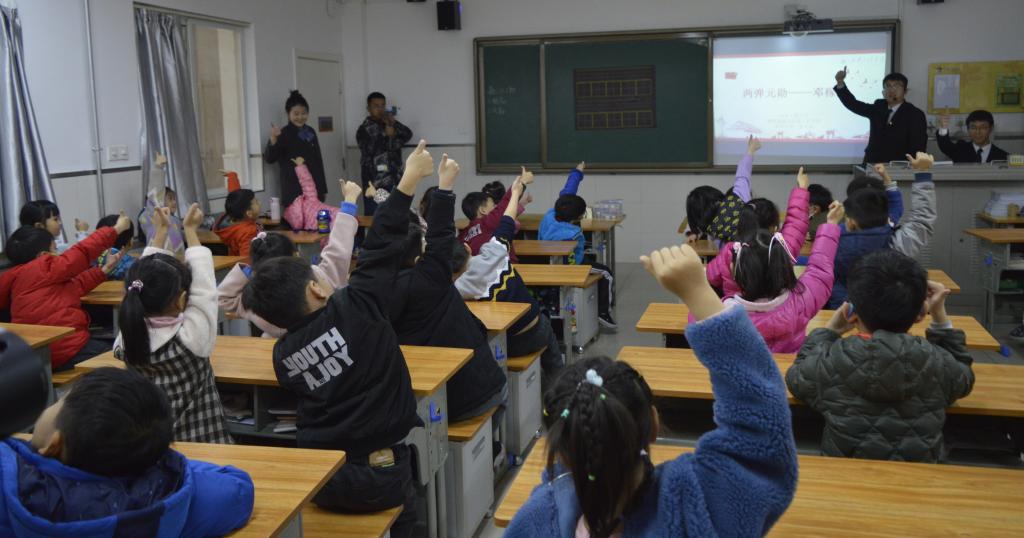 2019年11月29日下午,为贯彻落实 “不忘初心、牢记使命”主题教育精神,kaiyun开云官方网站学生第三党支部在铁五小学一年级开展了主题为“两弹元勋——邓稼先”的爱国主义教育课。参与活动的有铁五小一年级教师,铁五小一年级学生以及开云本科生第三党支部学生党员。本科生第三党支部书记张苹带队开展活动。