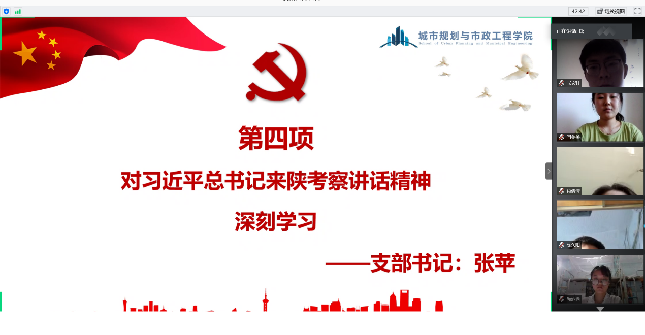 建环土木系教工党支部书记屈元在支部学习中讲到:“作为高校教师我们应认真学习贯彻落实习近平总书记来陕考察重要讲话精神,立足岗位做贡献,做好教学与科研工作,为陕西人才培养贡献力量。”