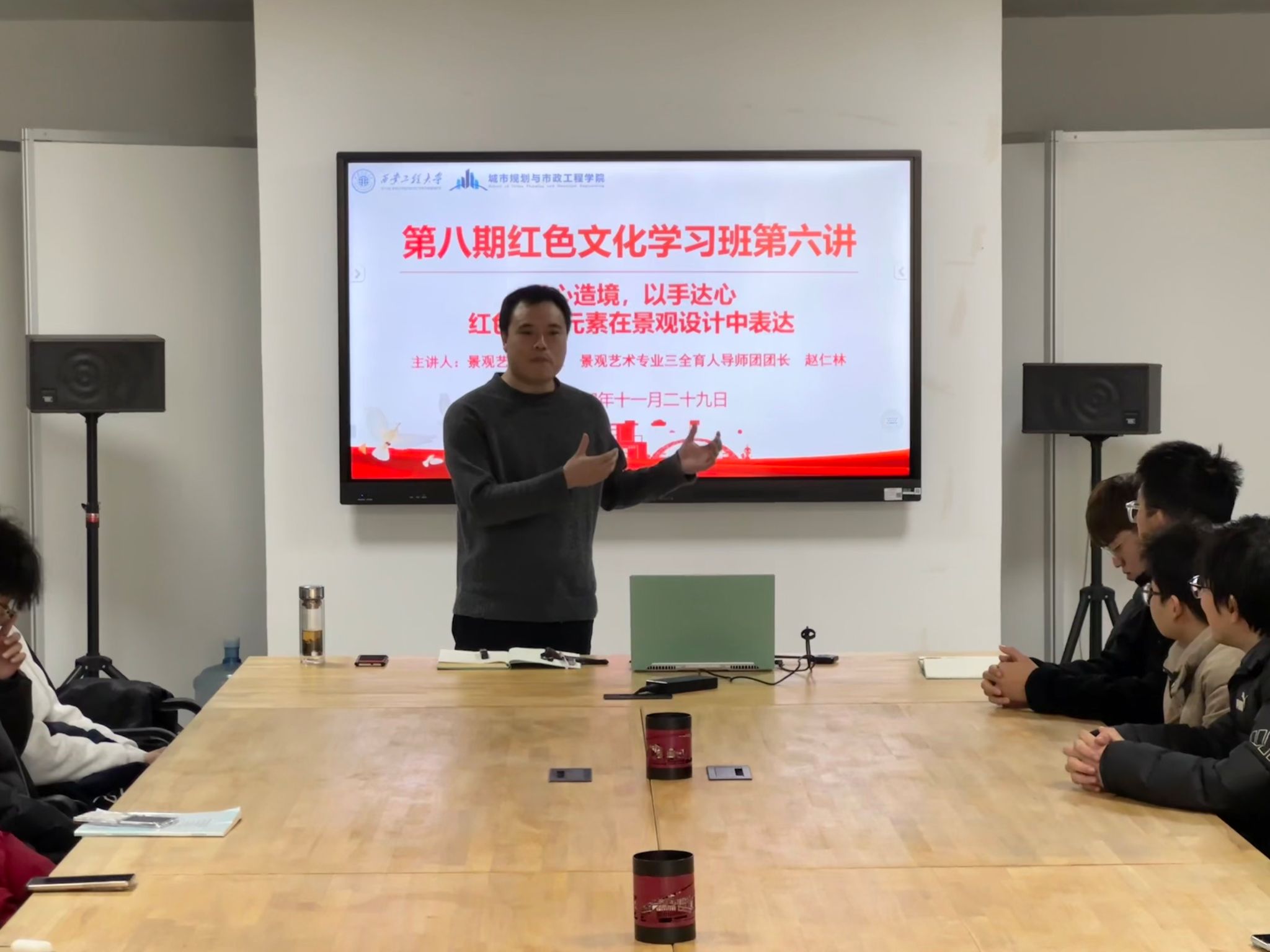 11月29日下午,kaiyun开云官方网站第八期红色文化学习班第六讲在学院301会议室开讲。第六讲邀请景观艺术系主任、景观艺术系“三全育人导师团”团长赵仁林老师主讲,学习班班长王春元及全体学员参加了学习。