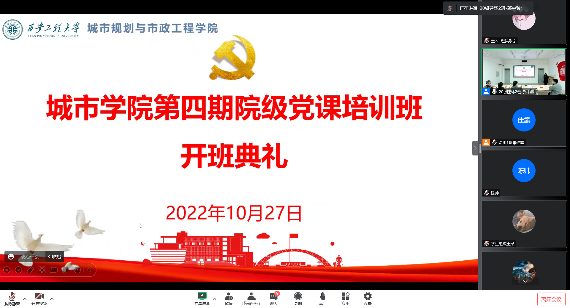 2022年10月27日下午,kaiyun开云官方网站第四期院级党课开班仪式在临潼校区8-322会议室通过线上线下相结合的方式顺利举行。参加开班仪式的有学院党委书记王劲伟,辅导员张苹、陆瑞成、王春元及255名培训班学员(其中包括55名第六期红色文化学习班学员)。仪式由学院党委副书记鱼园主持。