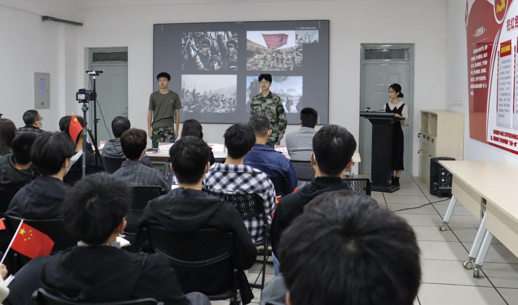 开班仪式结束后,党课第一讲开讲。第一讲展示的是由学院土木工程专业本科生党支部自编自演的红色小话剧——《特级战斗英雄——黄继光》。党员同志们生动形象的演出,感染着会场的每一位学员,他们情不自禁的挥动着手中的五星红旗,用经久不息的掌声对志愿军战士表达了崇高的敬意。红色小话剧是该支部的品牌活动,同时也是学院“五位一体”红色文化育人体系的重要组成部分。
