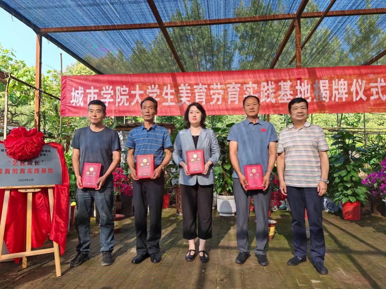 随后,党委学生工作部部长王志和后勤管理处处长张峰共同为基地揭牌;王劲伟书记代表城市学院向后勤管理处杨婷斐、于增利、卢建兵、马建朋四位老师颁发“三全育人导师团”大学生美育劳育指导教师聘书,并对他们长期以来指导学生志愿者开展花房实践活动的辛勤付出表示感谢。