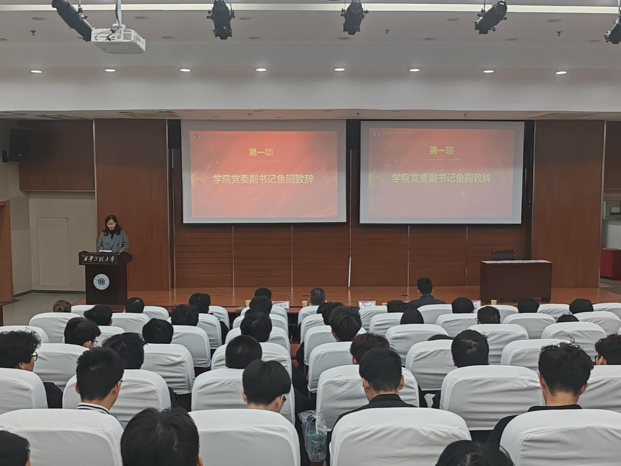 首先,学院党委副书记鱼园致辞。鱼书记回顾了学院自2018年成立以来的发展历程,充分肯定了学生干部在学院建设中的重要作用,并对全体学生干部提出了三点希望:一是学习姚穆院士事迹,坚定理想信念,做爱国奉献的践行者;二是坚持全面发展,提升综合素质,做德才兼备的引领者;三是强化责任担当,发挥模范作用,做服务同学的奉献者。鱼书记的讲话为全体学生干部指明了方向,激励全体学生干部为实现个人理想和中华民族伟大复兴的中国梦贡献青春力量。