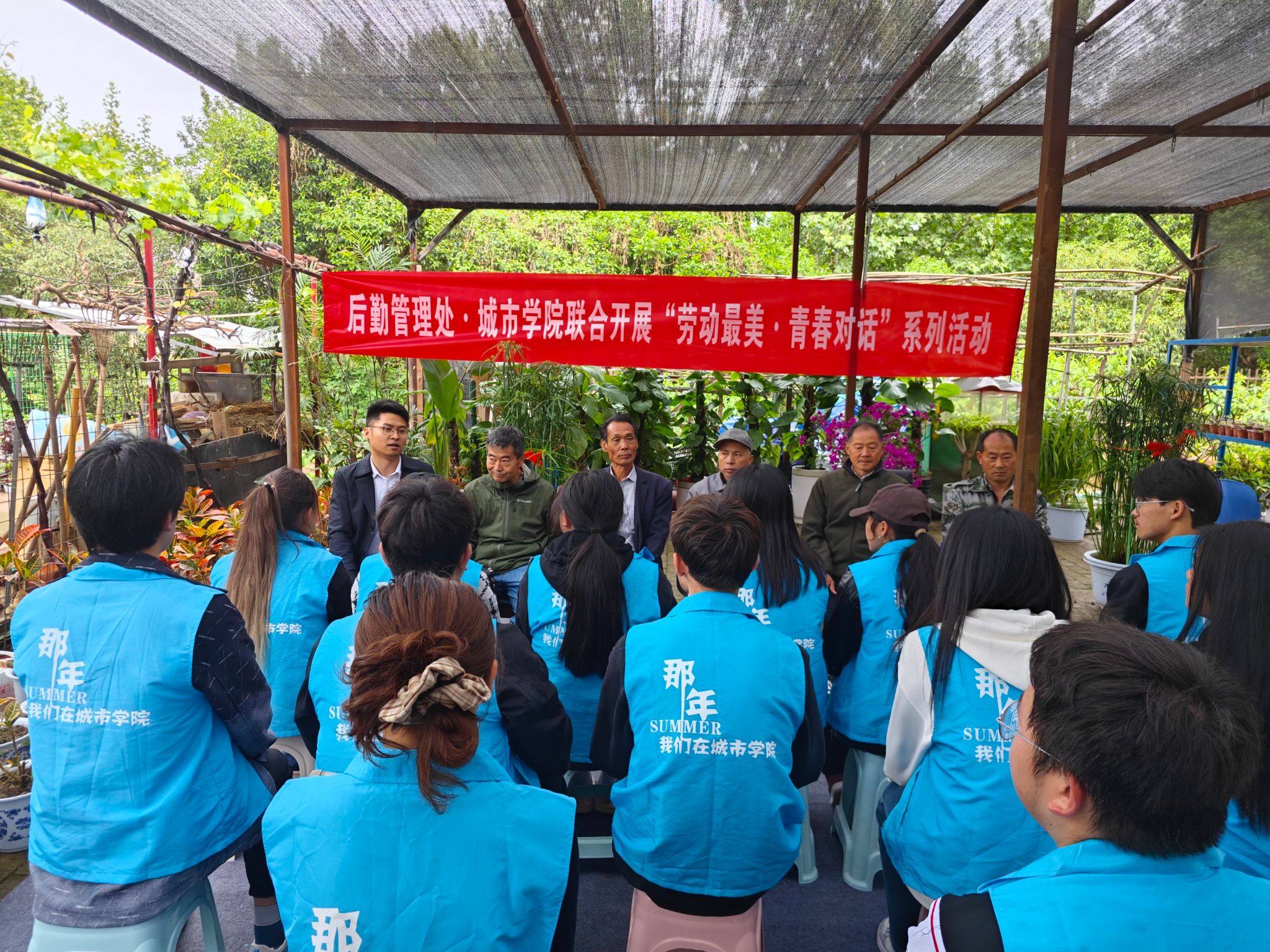 4月30日上午,在五一劳动节和五四青年节来临之际,后勤管理处与城市学院联合开展“劳动最美·青春对话”系列活动之劳育铸魂护花志愿者实训会。后勤管理处运营中心杨婷斐、花房管理员卢建兵、花房园艺师于增利、城市学院团委书记陆瑞成和20余名景观系专业志愿者参加实训会,会议由陆瑞成主持。