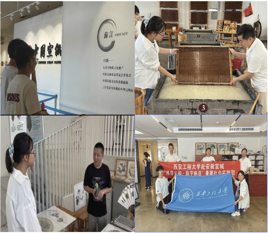 实践首站抵达中国宣纸文化园。在“纸寿千年”的独特氛围中,队员们不仅惊叹于宣纸制作的精妙绝伦,更深刻领悟到宣纸作为建筑图样与历史文献重要载体的文化支撑作用。一张薄纸,承载着从设计蓝图到营造法则的厚重历史,成为理解中国古建筑中和谐共生哲学与工匠精神的独特窗口。实践团成员们深入博物馆并采访非遗大师,探寻文化结合数媒传播的关键点。