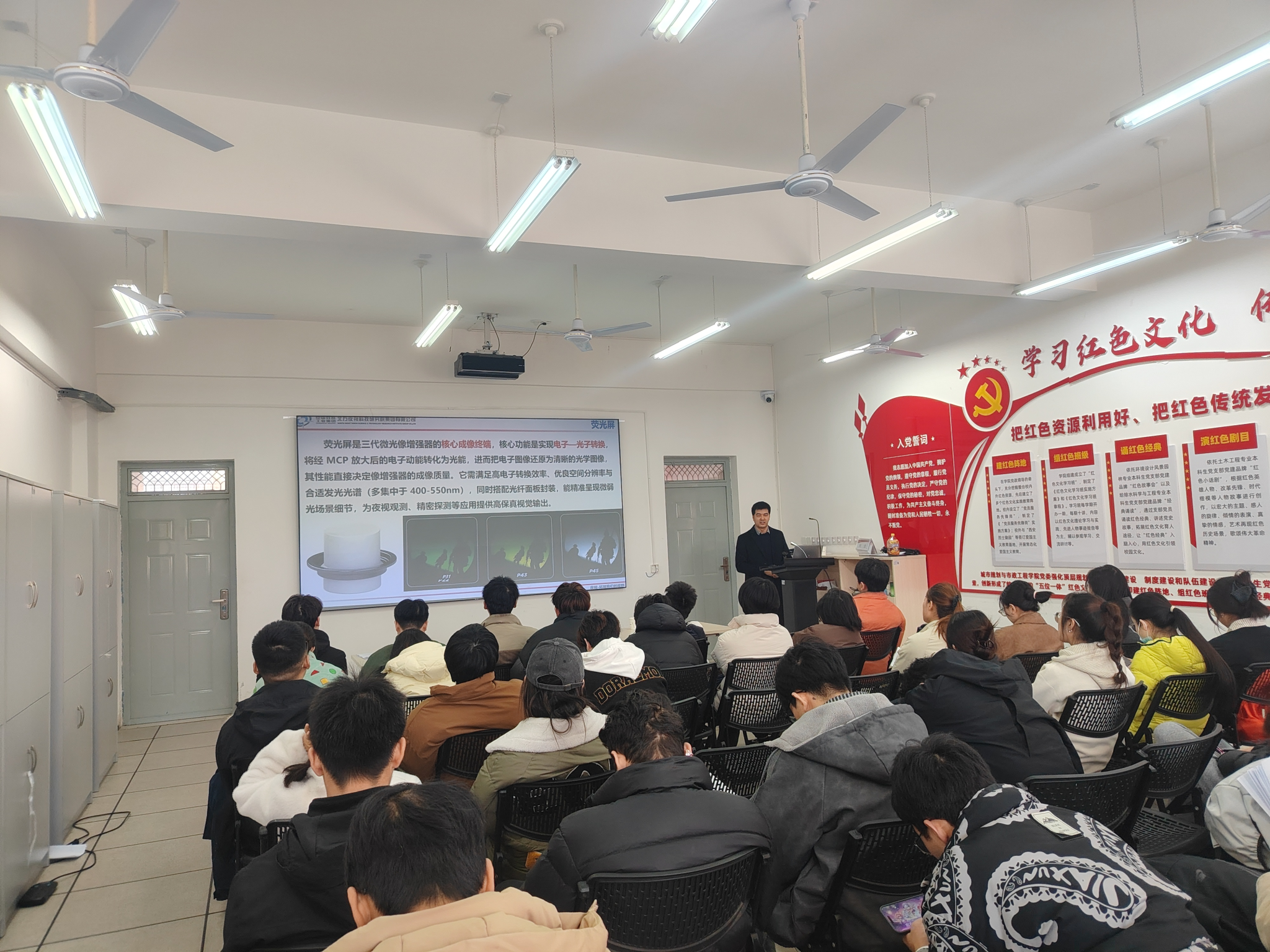 邱洪金博士深耕微光器件技术领域多年,拥有丰富的国家级科研项目实践经验,讲座现场,他从微光夜视技术的概念内涵切入,系统介绍了微弱信号探测技术的基本原理与发展历程,并围绕该领域的整体进展、典型应用场景以及科研项目从立项论证到落地实施的科研实践经验,助力在场师生构建起对领域的系统认知。