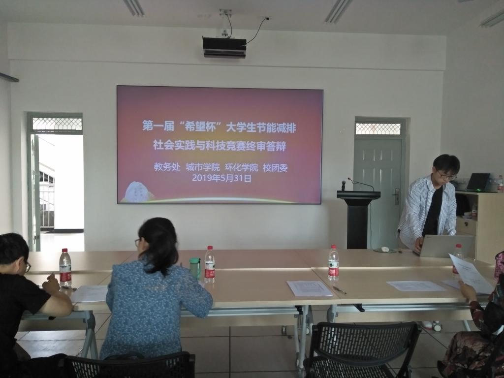 5月31日上午,由教务处、校团委和城市学院共同主办的第一届“希望杯”大学生节能减排社会实践与科技竞赛终审答辩在8号楼322会议室举行,城市学院屈元、陈希、郭英明和蒋婧四位老师担任大赛评委,城市学院副院长房平、学工办主任凌旭也参加了本次活动。
