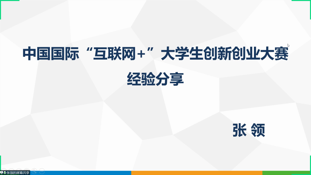 往届“互联网+”大赛省级银奖获得者张领向大家分享了其参赛经验,并针对项目选择,赛道选择以及项目策划书如何撰写、路演答辩等重点问题给出了宝贵意见。