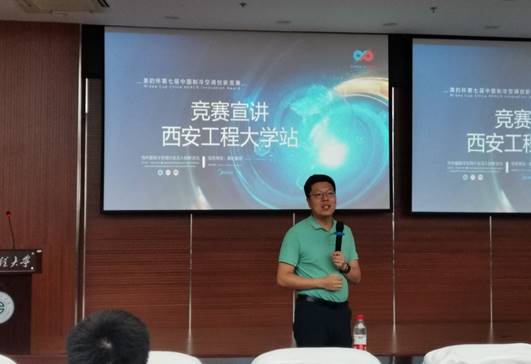 本次竞赛宣讲会,由强天伟副院长主持并作动员讲话,黄翔教授代表我校致辞,并鼓励学生积极参加专业竞赛,提升科研创新能力。美的集团家用空调节能技术及热技术负责人李日新博士、西安运营中心人力资源部王思聪经理对美的集团进行了介绍。中国制冷学会会员部主任高恩元博士就赛事所采用的参赛形式、比赛流程、竞赛课题、作品的创新性和评分标准为大家进行了详细介绍,最后与参会学生们热情交流互动。
