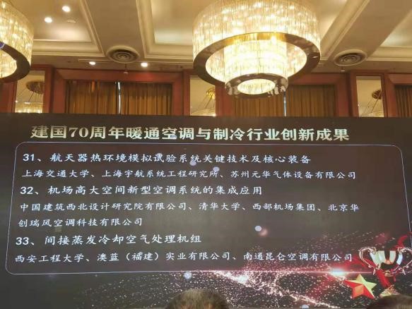 在会议期间,我校与产学研合作单位澳蓝(福建)实业有限公司、南通昆仑空调有限公司联合申请的“间接蒸发冷却空气处理机组”项目荣获建国 70 周年暖通空调与制冷行业创新成果奖;黄翔教授被授予中国制冷学会“资深会员”称号,该称号是中国制冷学会级别最高的称号。这两项奖项的获得,是对黄翔教授二十年如一日对蒸发冷却技术研究的肯定、更是对kaiyun开云官方网站暖通专业的一种激励。