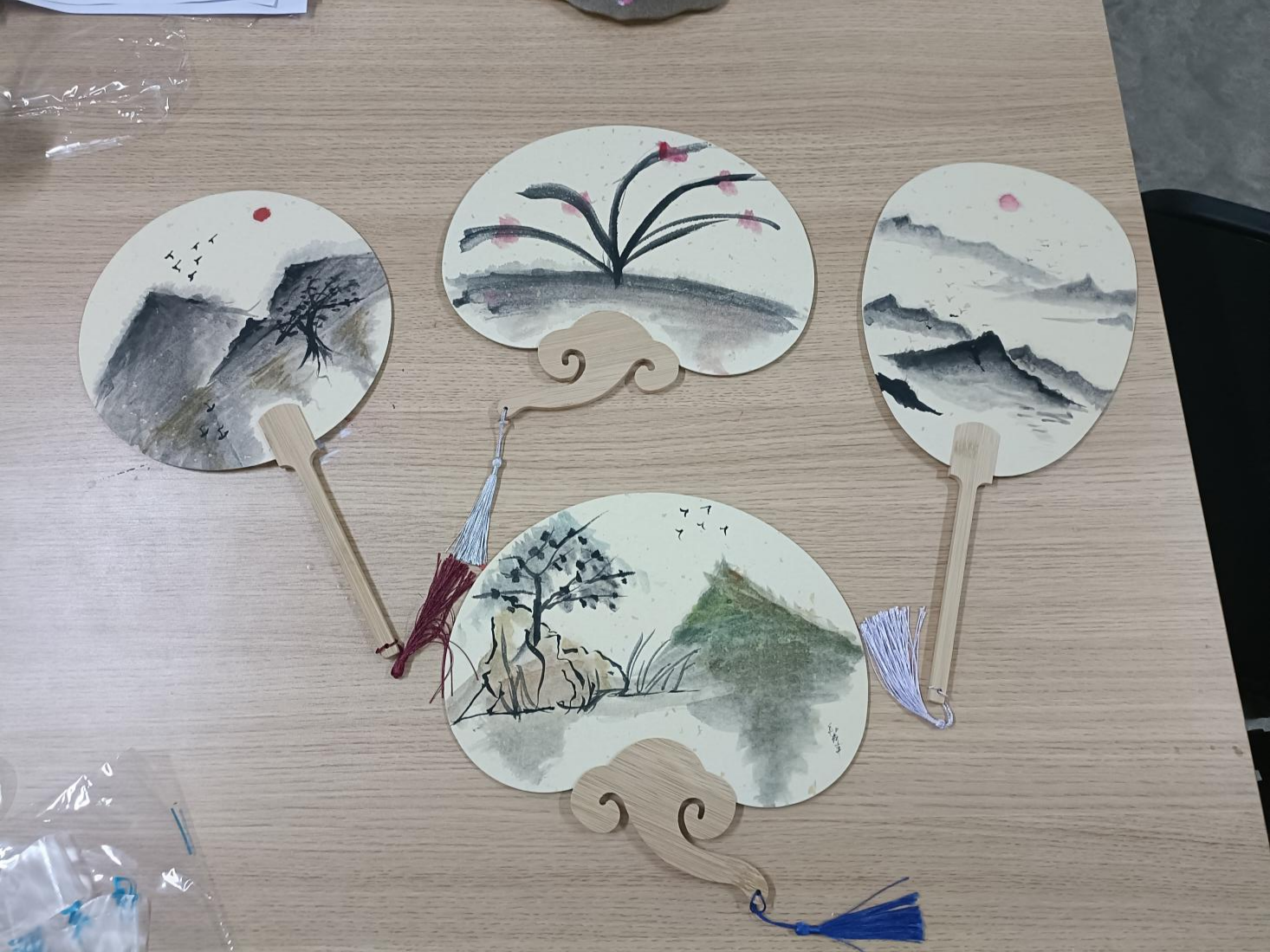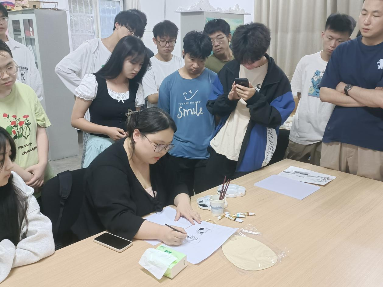 此次活动特别邀请2022级环境设计专业的王蕊同学讲解国画的绘画技巧以及构图、描摹、上色等步骤,让参与同学掌握国画的基础知识和基本技能。学院资助专项学生助理毛箭章向参与活动的同学讲解了漆扇的相关知识,让同学们充分理解漆扇这一艺术形式背后非遗文化的独特魅力。