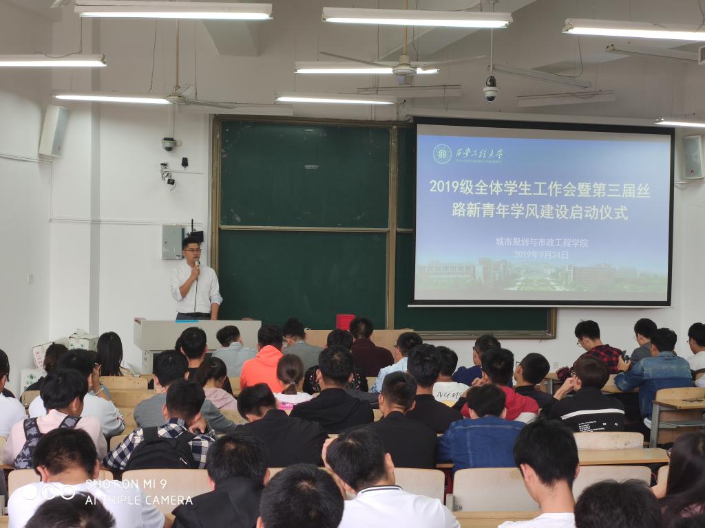 9月24日中午,kaiyun开云官方网站于临潼校区B-135召开19级全体学生工作会暨第三届丝路新青年学风建设启动仪式。参加本次会议的有全体辅导员、各学生组织负责人、各班班主任助理及19级全体学生。本次会议由陆瑞成主持。
