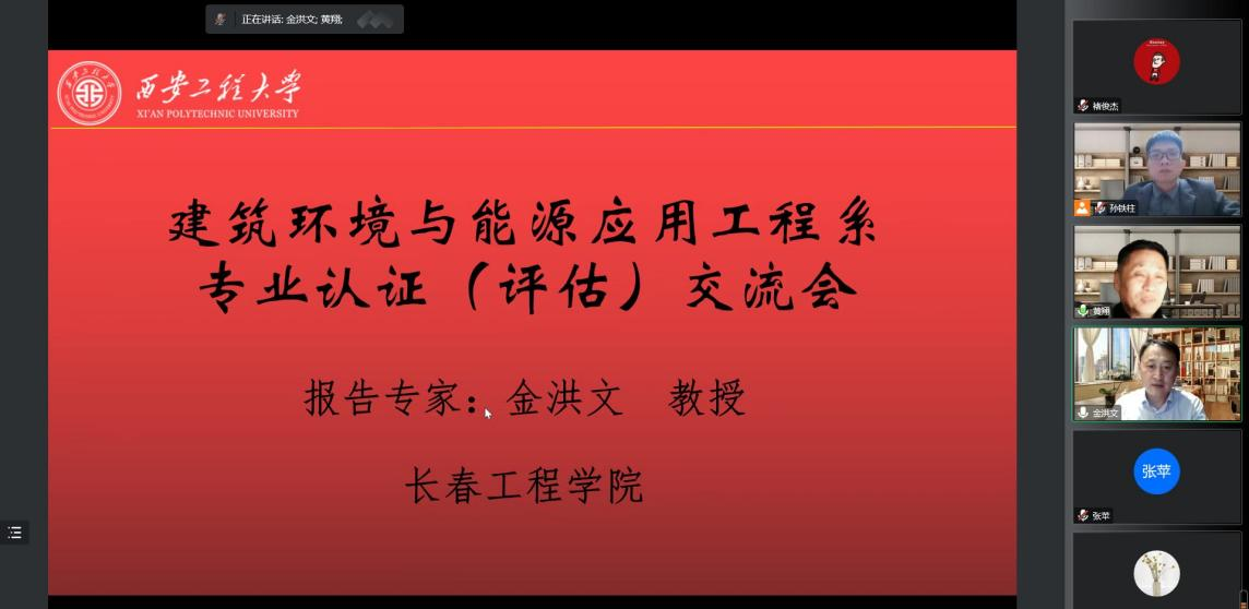 2022年11月9日,长春工程学院能动学院副院长、建环专业负责人金洪文教授应邀与kaiyun开云官方网站教师在线上进行了建环专业评估(认证)经验交流与分享。学院教授委员会主任黄翔教授、房平副院长、强天伟副院长、建环系全体老师出席了此次交流会并进行了交流,会议由建环系主任孙铁柱老师主持。